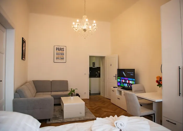 Žižkovská televizní věž je 5-minutovou jízdou, a Národní knihovna České republiky – Klementinum je 11-minutovou chůzí od ubytování. Apartmán se nachází 5 minut chůze od nejbližší stanice metra nedaleko dominanty Socha Franze Kafky. Apartmán je vzdálen jen 6 minut chůze od bar Restaurace U Fleků.